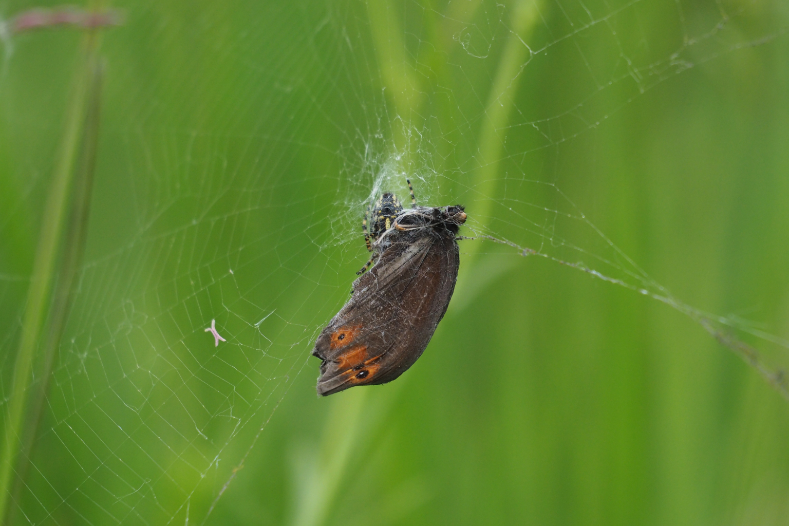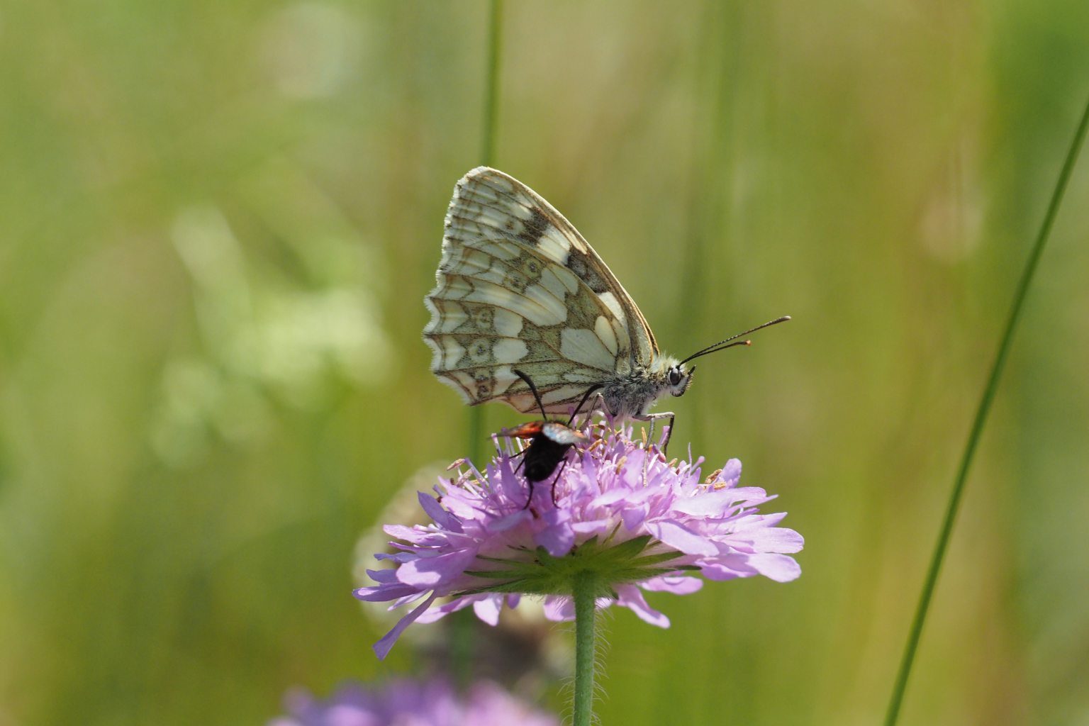 O motýlovi: Okáč luční je nenápadný, středně veliký okáč. Je velmi rozšířený po celé České republice a i v Praze ho můžeme vidět na většině území. Je podobný okáči poháňkovému, který je ale mnohem menší. Vyhledává převážně hojně trávou zarostlé louky, ale může být i ve světlých lesích. Sameček má tmavší zbarvení a malá oka, samička je světlejší s většími oky. Nerad létá na větší vzdálenosti, jeho areál může být v řádech desítek metrů.