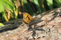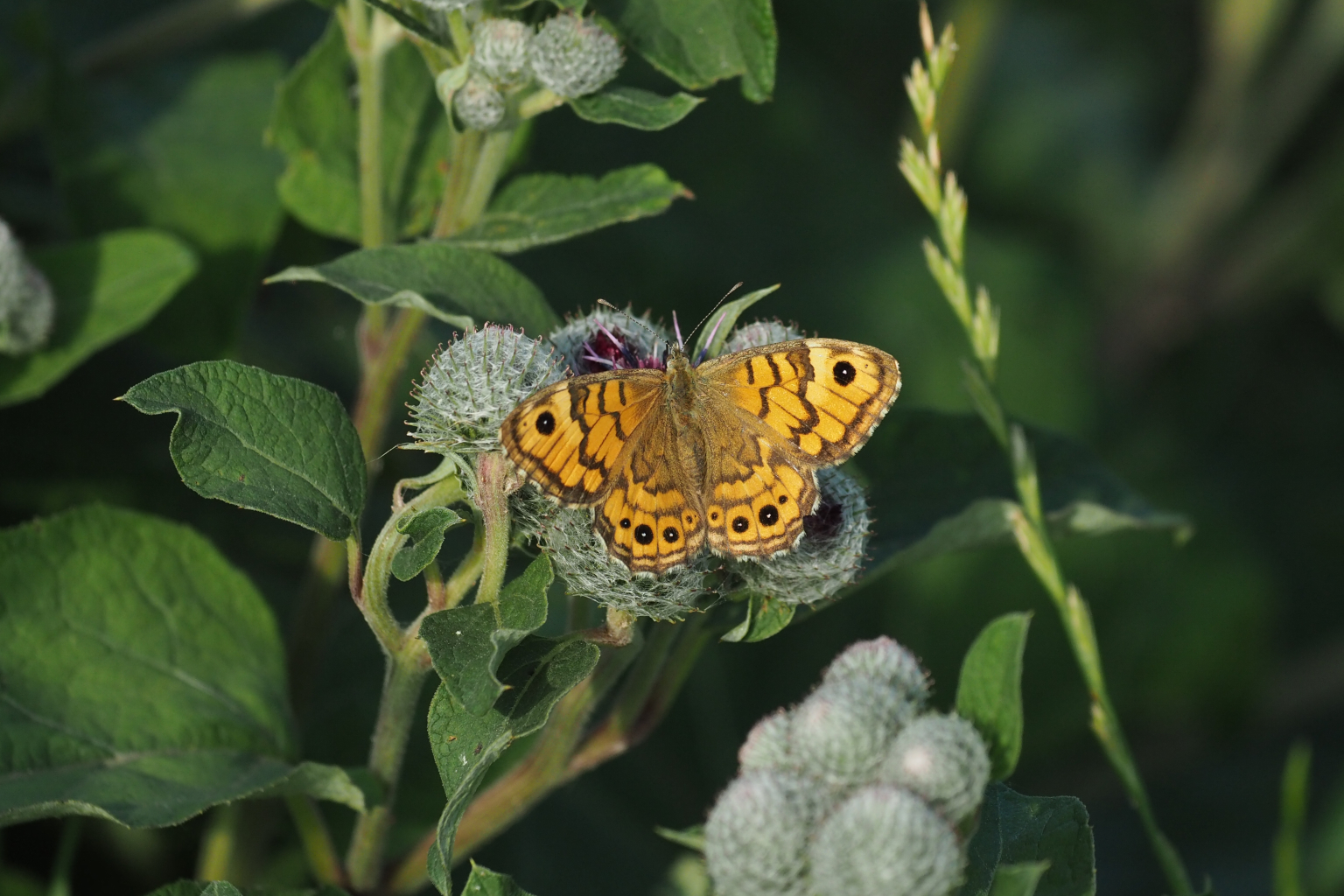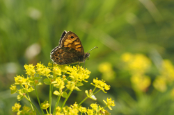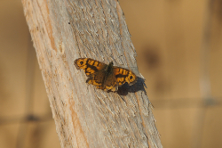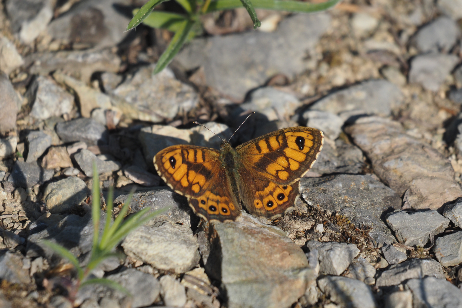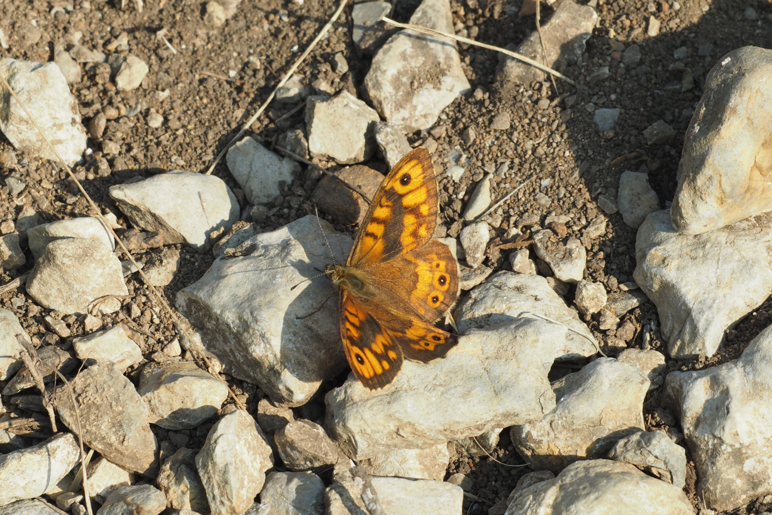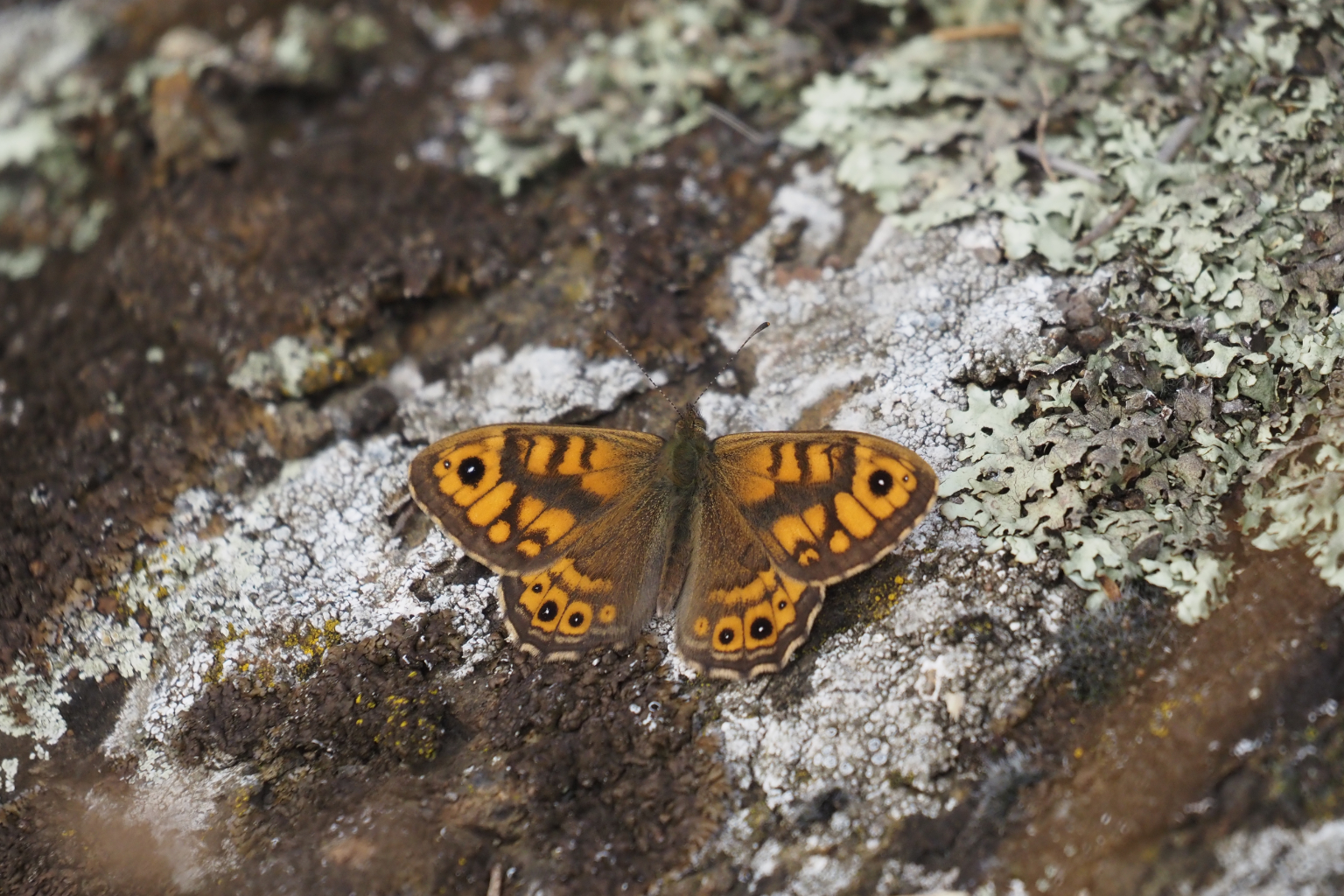 O motýlovi: Okáč zední je středně veliký okáč, který má napadně oranžové zbarvení. Během letu může připomínat svou barvou perleťovce. Zespod zadních křídel má řadu malých oček a na předním křídle jedno velké oko. Tento motýl se vyskytuje na většině našeho území a v Praze ho mimo centrum můžeme vidět kdekoli. Má rád kamennité a suché svahy, štěrk, cesty, zdi nebo skály. Při hledání partnerky kombinuje různé strategie, mezi které patří i tzv. "hilltopping".